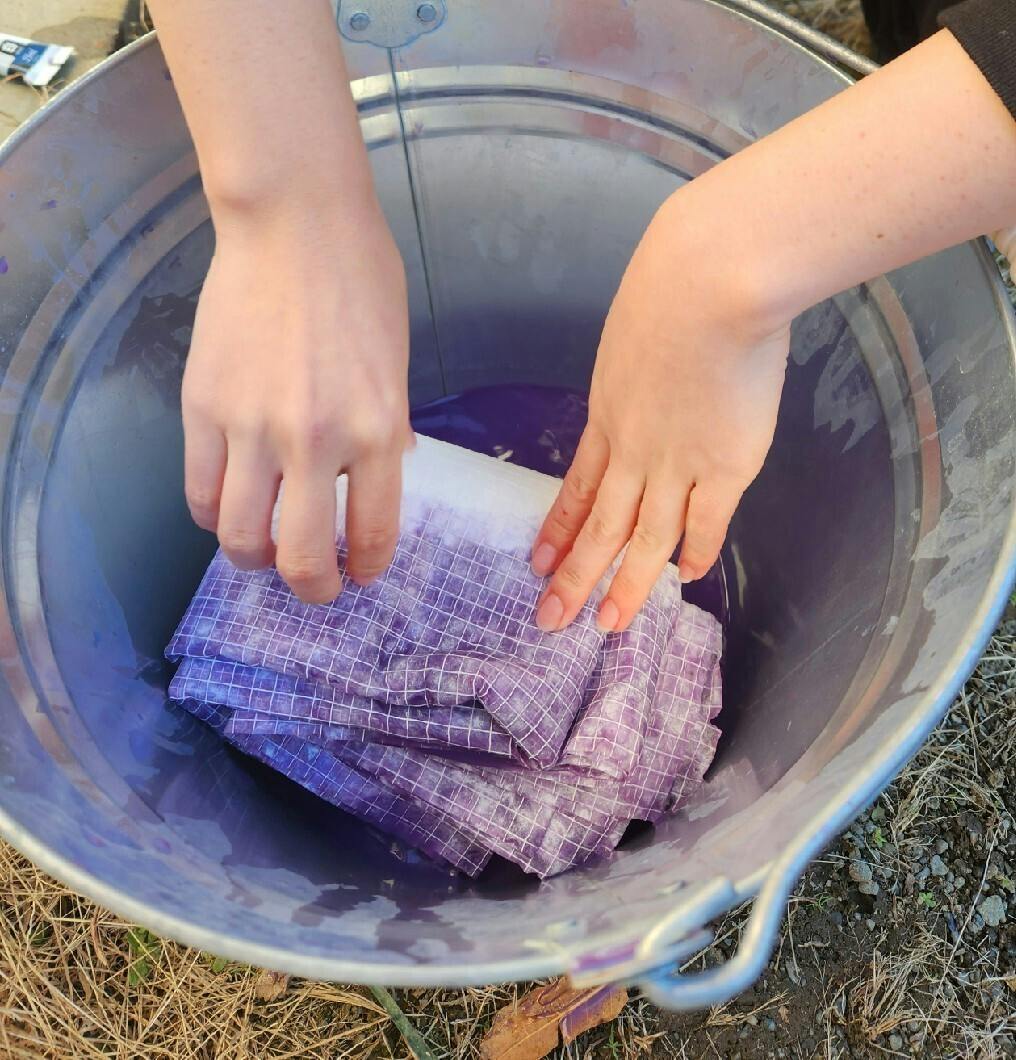 1/29のコンサートで舞台演出に使用する金長特殊製紙の糸落水を染めました!