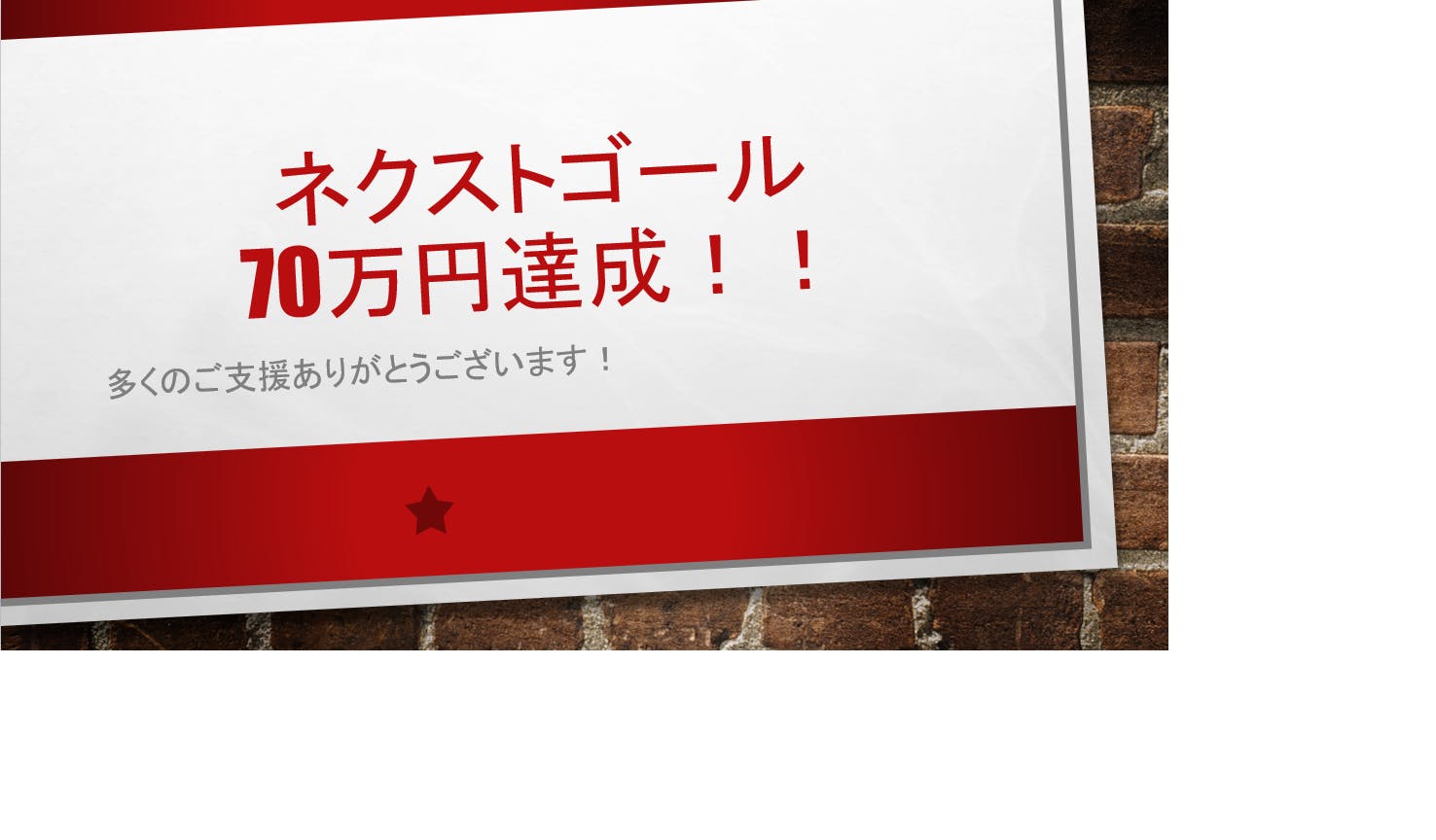 ネクストゴール70万円達成しました! たくさんのご支援、応援メッセージありがとうございます。