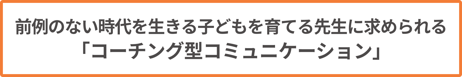 一方で、かつての教育で重んじられていた「指示する」「教える」を中心としてティーチング型のコミュニケーションのみでは、子どもたちの多様な力を育てることが難しく、先生が「聴く」「問いかける」を中心としたコーチング型のコミュニケーションを身につけることが重要であると考えています。