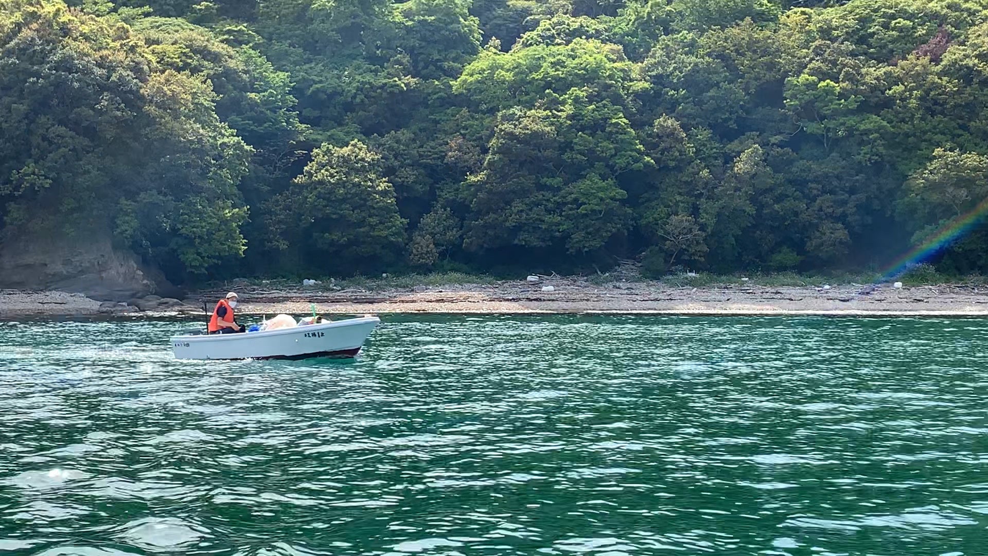 地元の漁師さんと一緒に、海上活動の障害にならないエリアに海洋ごみがあることを確認しました。