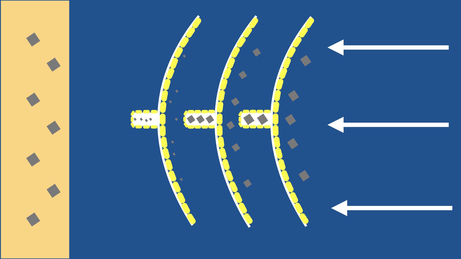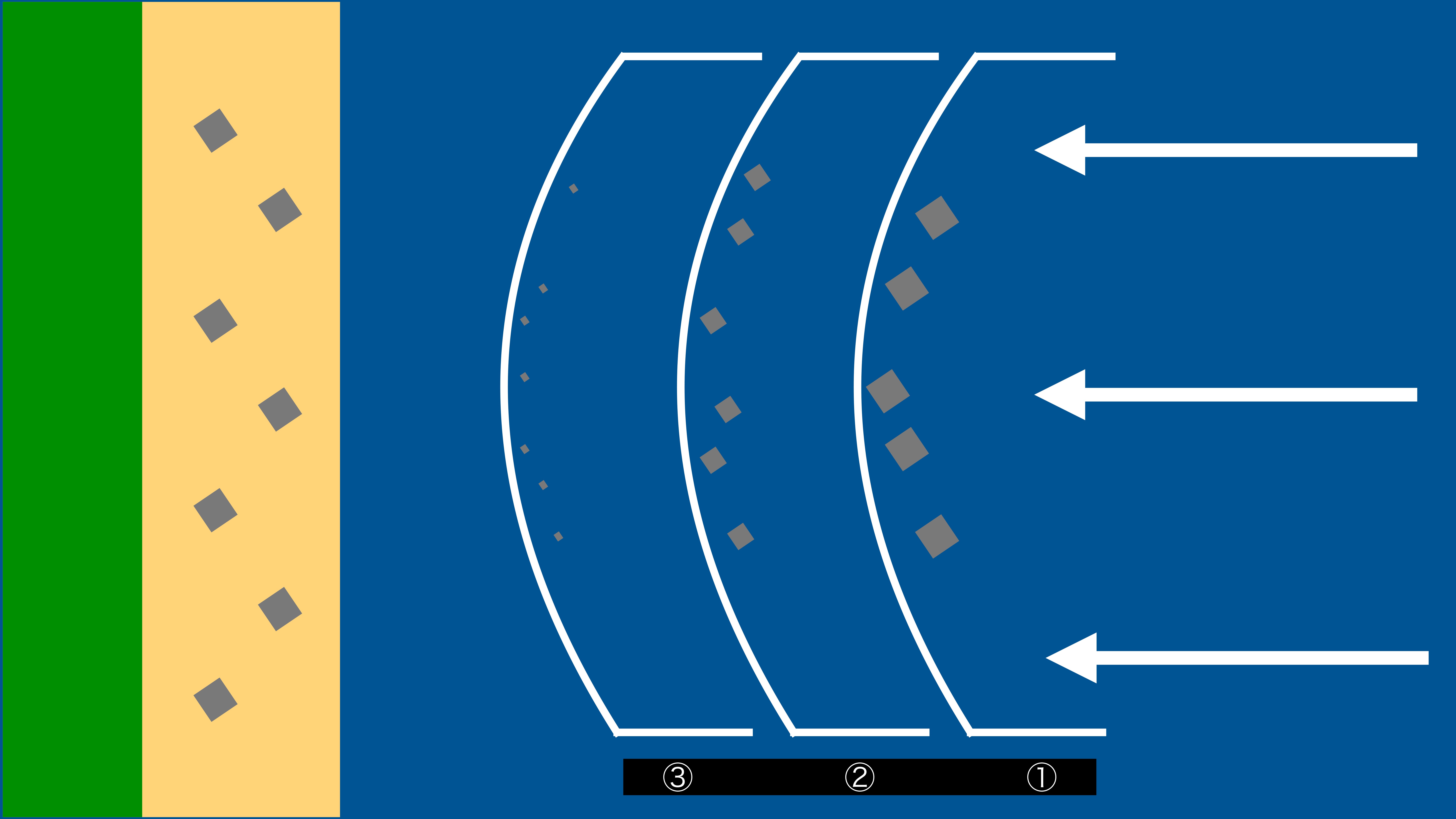 既に海洋ごみが溜まっている場所というのは、潮流によって海洋ごみが辿り着く中間地点と言い換えることができます。この場所には潮流によって自動的に海洋ごみが集まります。