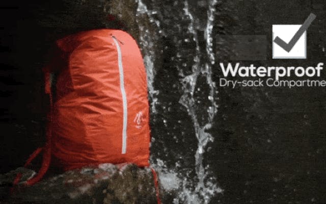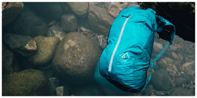 メイン収納の蓋やファスナーを含め、バックパック全体は防水設計になっており、川や海辺など水回りのアウトドア活動にも使用できます。