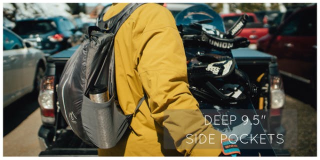 両サイドポケット付きで、ペットボトルやマグボトル、折り畳み傘などの収納が可能です!