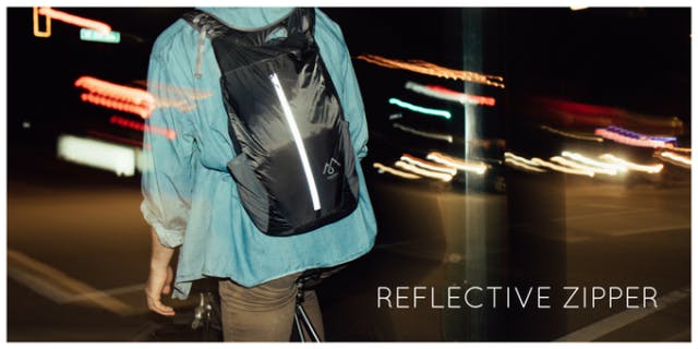 フロントポケットのジッパー部分には反射材が付いており、夜間の使用にも対応できます!