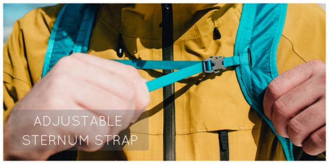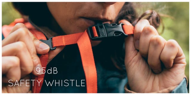 バックパックの胸ストラップには、95DBの笛が付いており、仲間とのコンタクトや非常時の救援にも役立ちます。