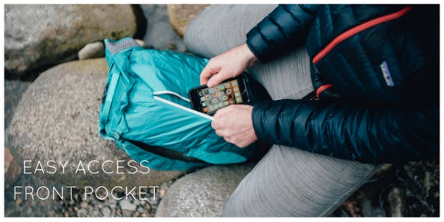フロントにはアクセスが良いポケットが付いており、すぐに使用したいスマホや財布、タオルなどの収納ができます!
