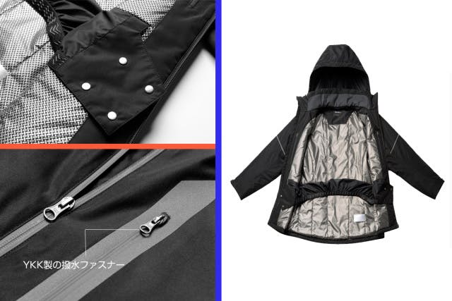 なお、通気性抜群のため、アクティブな活動で汗をかいてもムシムシしない構造になっています。外側からは防水仕様、内側からは通気性抜群という両面での良いとこどりの高機能ウェアで、服の中が蒸れにくく快適に過ごせるようになっています。