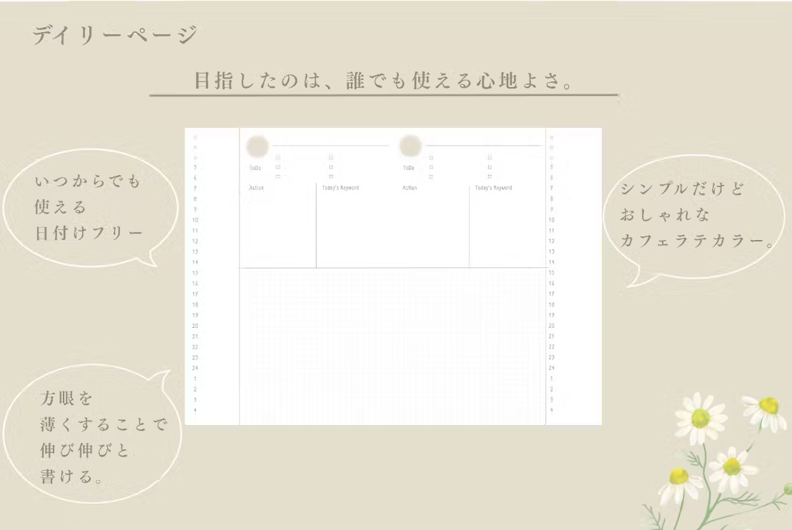 そして母親としての自分とは別の、一人の女性が目指す未来を叶えてくれる手帳です。