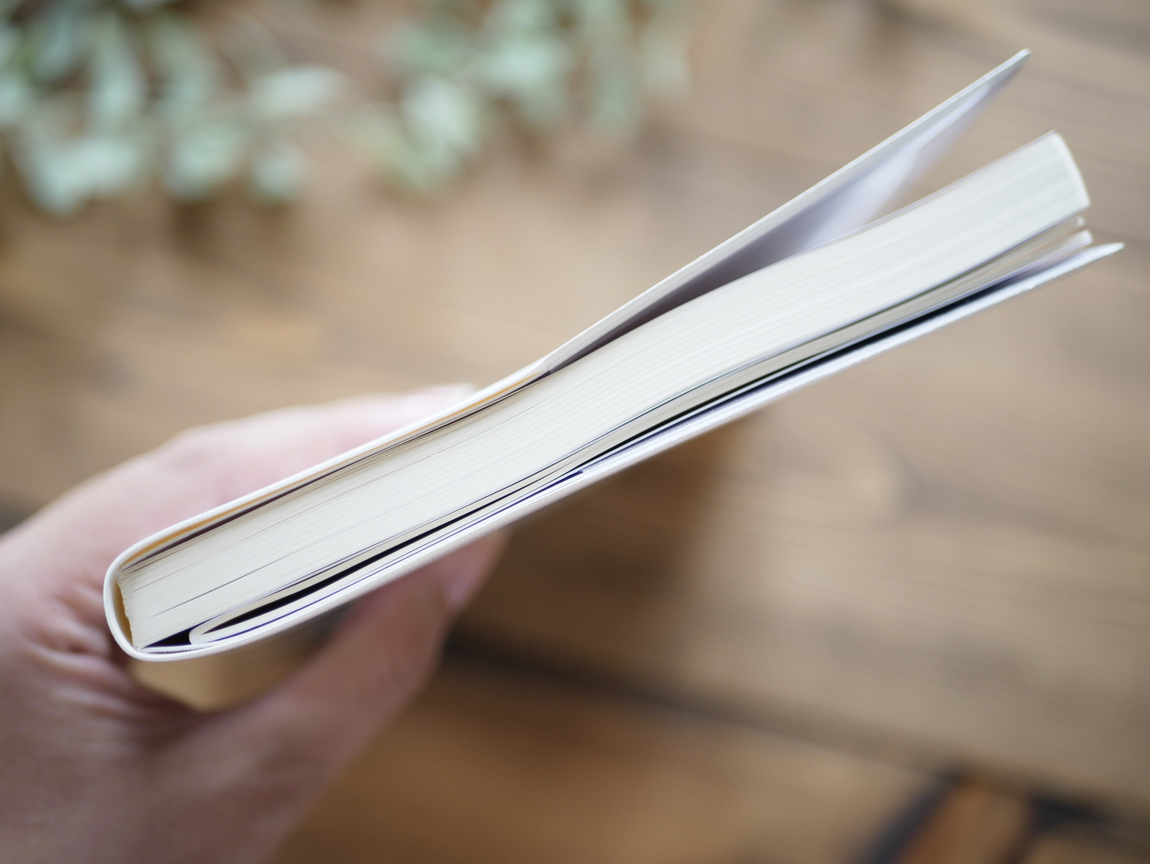 丁寧な糸かがり綴じ製本だから手で抑える必要がありません。(写真は開いたときのイメージです。)