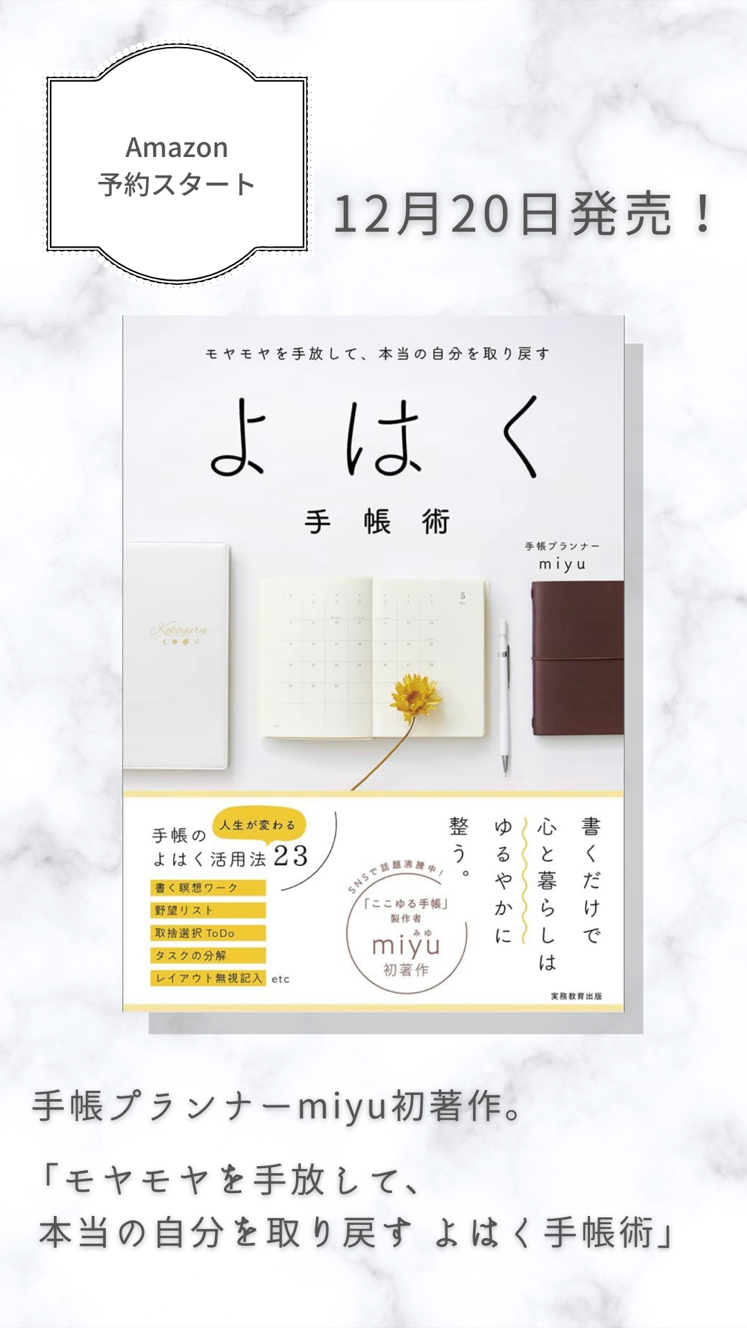 2022/12/14 21:00皆さまこんにちは!実はこの度、12/20に初著作が発売となります!本のタイトルは「モヤモヤを手放して、本当の自分を取り戻すよはく手帳術」✴︎手帳がなかなか続かない✴︎よはくに対してプレッシャーを感じている✴︎心や暮らしに余裕がない✴︎手帳に対して悩みを持っているそんな方にぜひ届いてほしい内容となっています!Amazonでは既にご予約がスタートしております。モヤモヤを手放して、本当の自分を取り戻す よはく手帳術 https://amzn.asia/d/5vSptCV読んで感想などもいただけたら更に更に嬉しいです♪今月、Instagram@miyu.hanayaやTwitter@OrgoniteMでは、どんどんコラボLIVEなどをしていきますので遊びに来てみてくださいね。 もっと見る