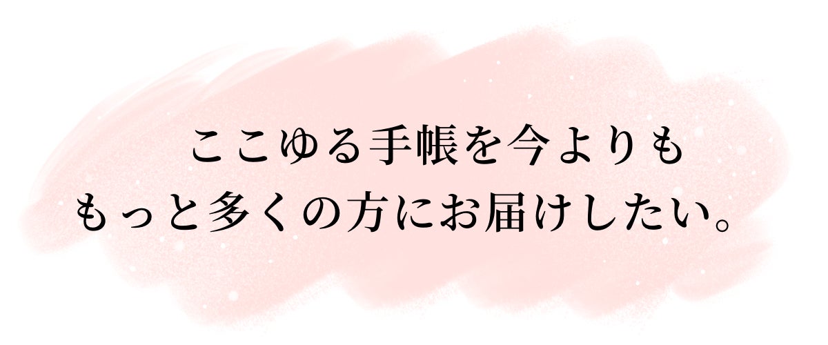 いつもここゆる手帳をご愛用いただき本当にありがとうございます。ここゆる手帳は1冊の真っ白なノートから始まり、ユーザーの皆様の声を大切にしながら出来上がってきた手帳です。これからもここゆる手帳は皆様と共にあり、一緒に成長していきます。