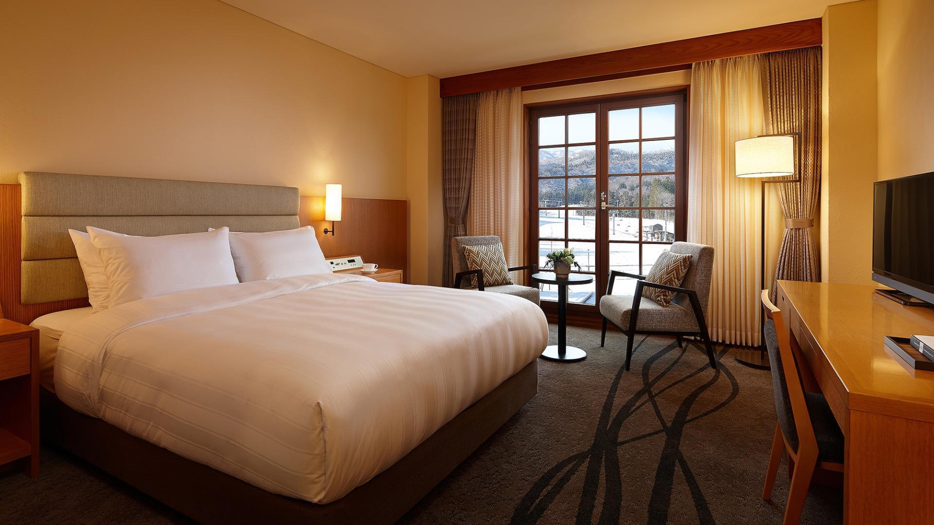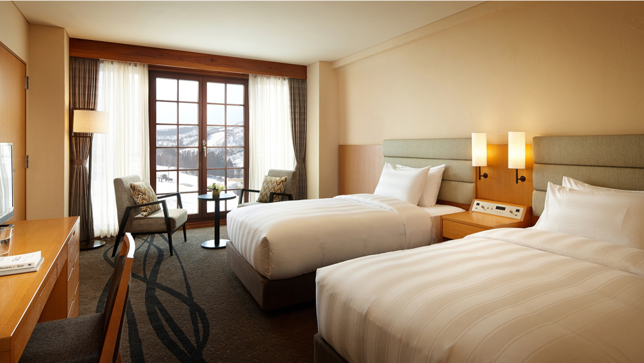 ①ハイクオリティの客室・レストラン・館内設備・スキー場完備