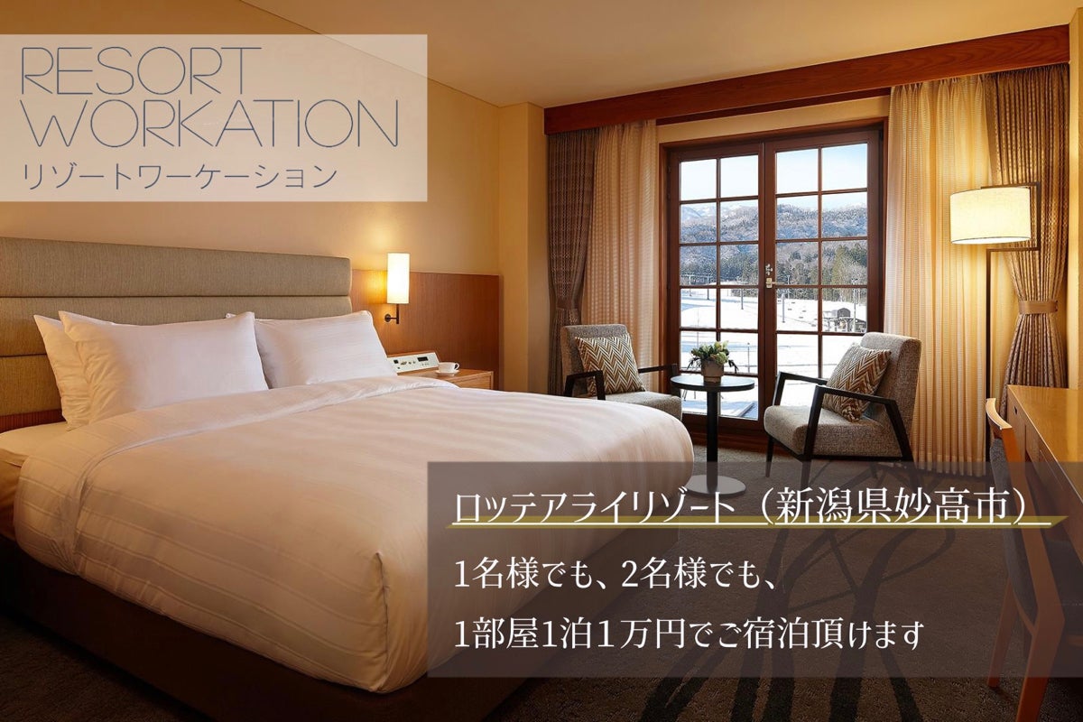 「ロッテアライリゾート」は、新潟県妙高市に位置するラグジュアリースキーリゾート(ホテル+スキー場+アクティビティ)です。ウィンターシーズン中はスキーやスノーボードなどのウィンタースポーツや温泉が楽しめる他、グリーンシーズン中も敷地内のアスレチックやジップライン・ボルダリング、ゴンドラでの観光を楽しめる複合リゾート施設です。ホテル内は、Wi-Fi環境が整っており、ビジネスセンターやライブラリー等の施設はワーケーションに最適です。さらに付近には、スノーモンキーで人気の地獄谷野猿公苑・桜の名所高田城址公園・風光明媚な野尻湖などの観光地が点在しています。