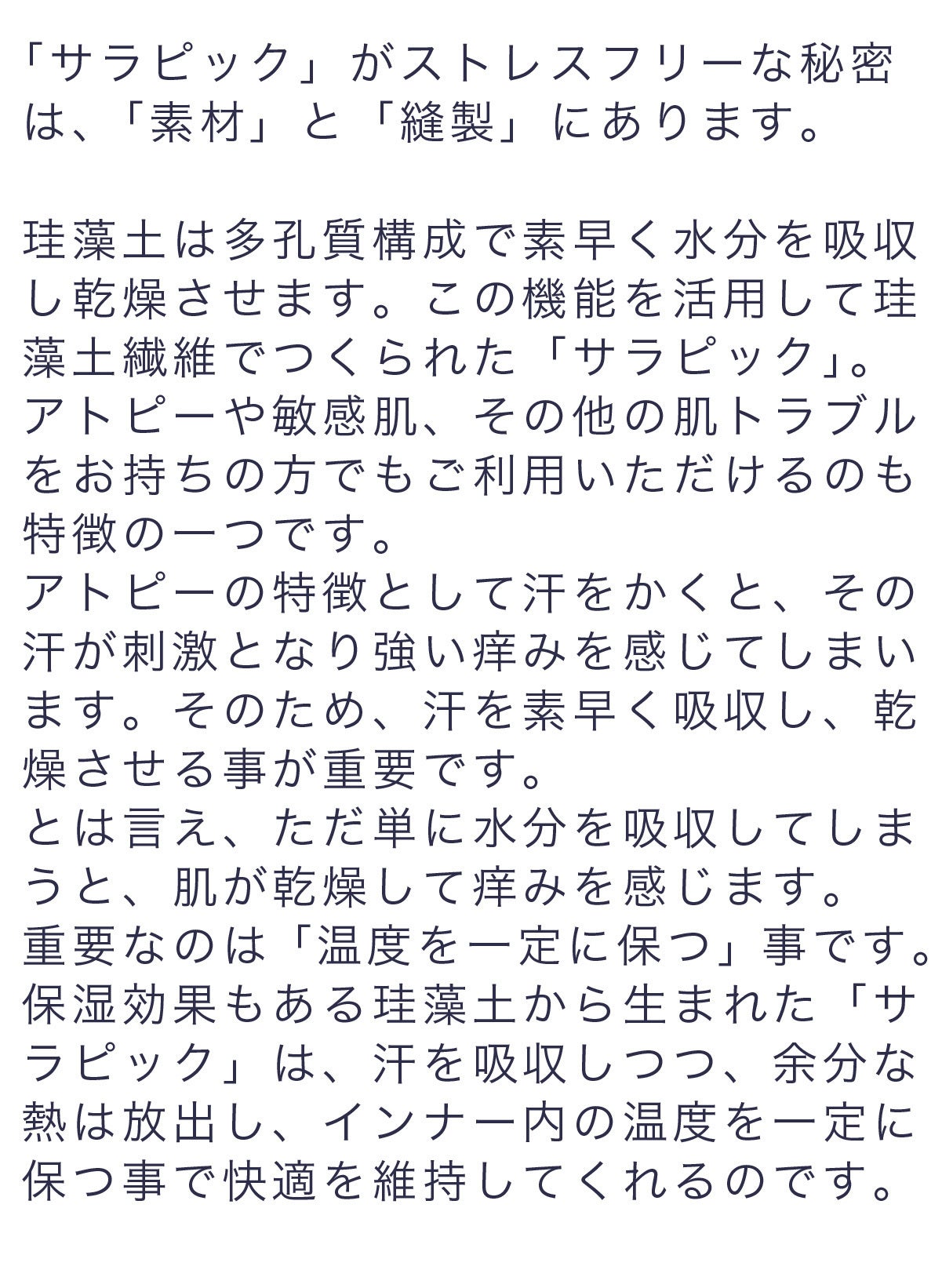 敏感肌に珪藻土が汗を吸収するストレスフリーのサラサラインナー誕生!暑い日にも、寒い日にも、ワークアウト時にも、オールシーズン使える珪藻土繊維でできた特別な「サラピック」で快適な毎日へ。