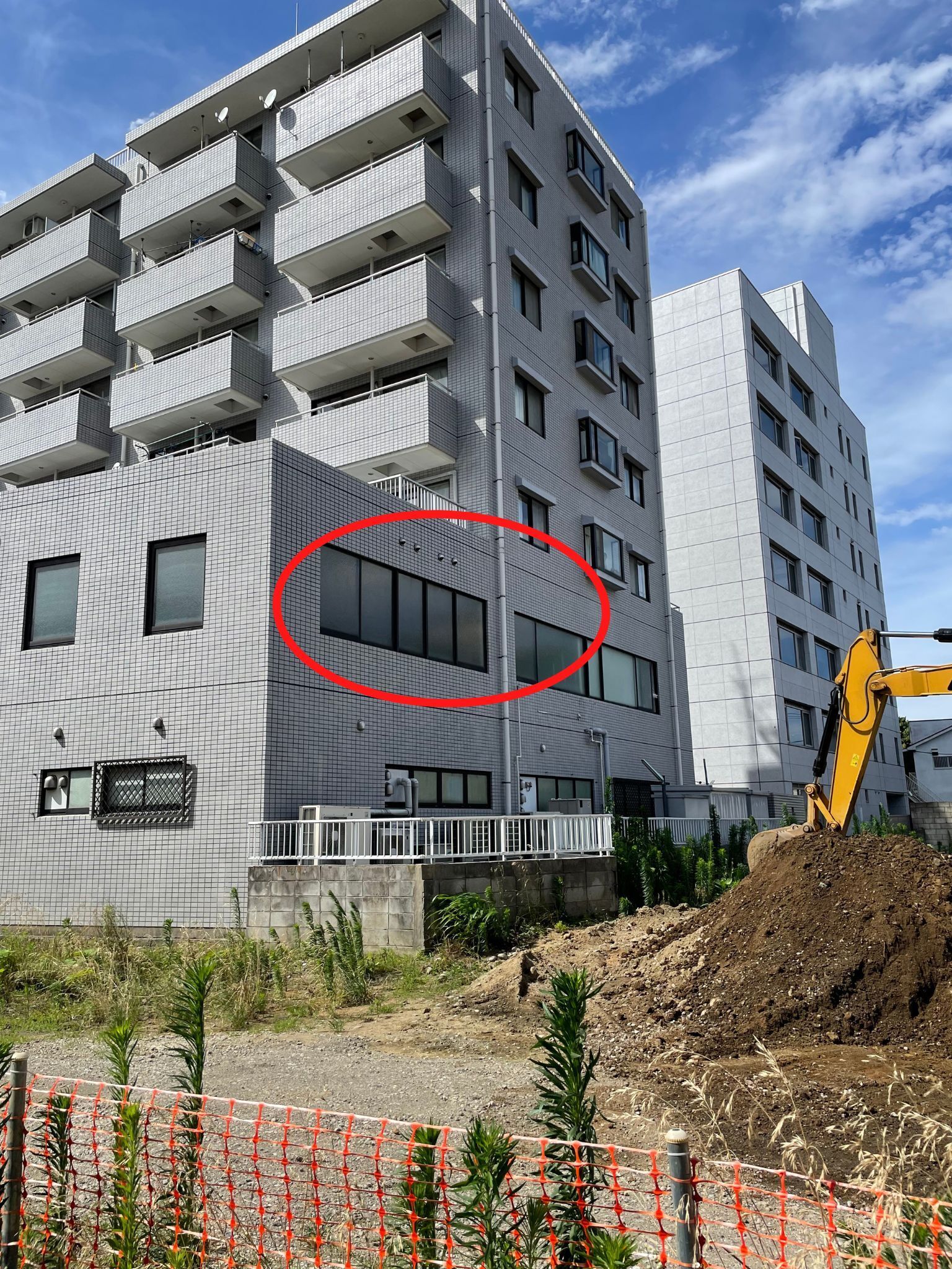 赤枠印の箇所に広告シートを張り出す計画なのですが、建物の構造上ここに広告シートを張り出す場合、高所作業車が必要になります。