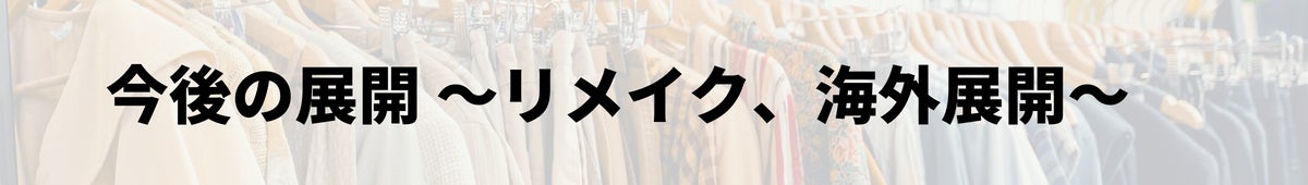 さらに、今後は国内だけでなく、海外への展開、消費者から着なくなった服を引き取るなど、様々な活動を構想中。循環型社会につながる活動を継続して行っていきます!