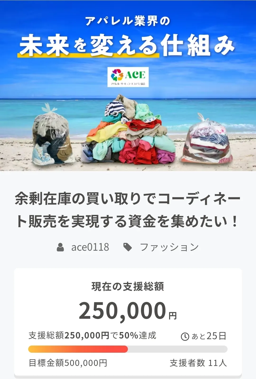 目標金額50%を達成することができました。