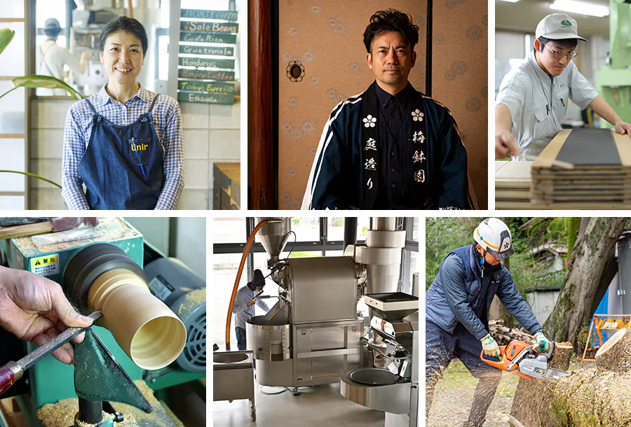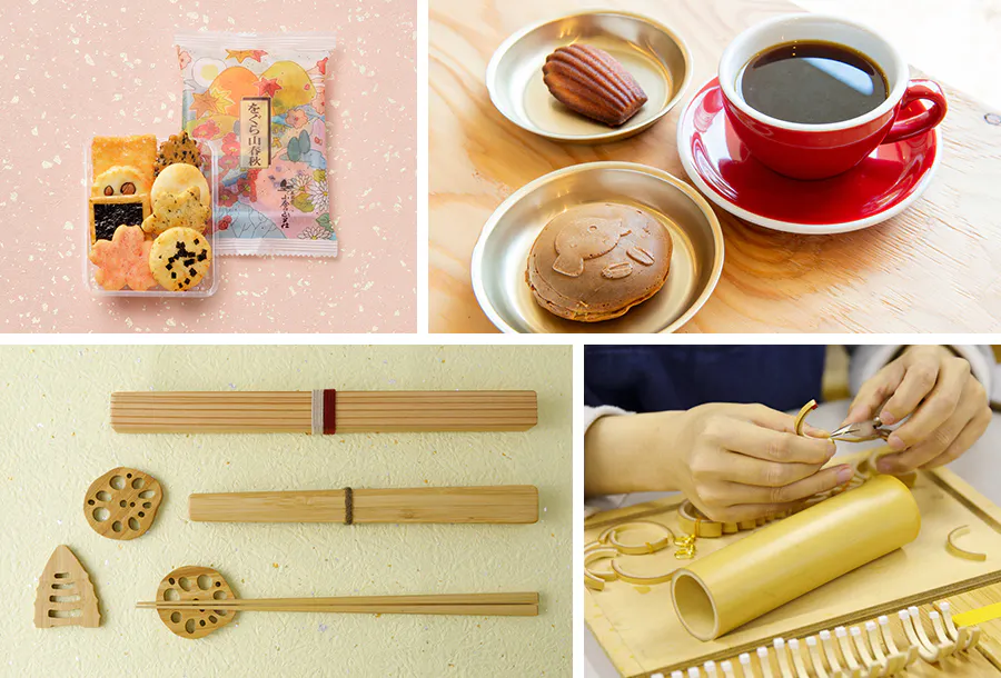 「小倉百人一首」の贈答歌を題材に贈答品として長く親しまれている、あられ・おかき専門店「小倉山荘」。最高峰の国際品評会カップオブエクセレンス(COE)で入賞したコーヒー豆を取り扱い、日本屈指のバリスタたちが在籍するスペシャルティコーヒーブランド「Unir」。どちらも日本各地で多くのファンから愛され、業界をリードしつづけるブランドですが、発祥の地は、長岡京市。また長岡京市といえば、竹の産地。まちを代表する竹工芸の工房「高野竹工」は、様々な伝統工芸の技術を有する職人が一貫して製造し、伝統的な茶道具や京都の有名寺院の古材をリメイクした製品から日用品まで幅広く制作。海外の美術展・工芸展へも挑戦し、国内外から高い人気を誇っています。全国規模のブランドが、世界へ挑戦するプロフェッショナルが、このまちから誕生しているのです!