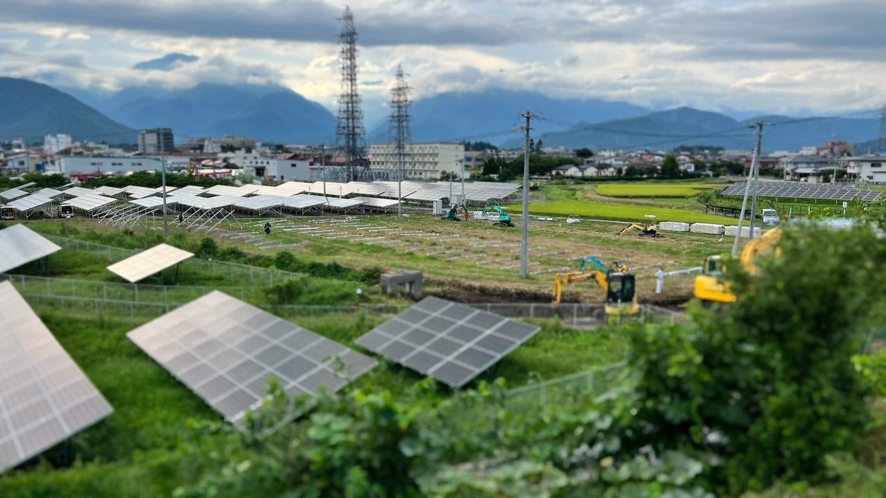 そんなある日の一枚。この写真は、実家への帰り道で目にする光景です。一面に広がる太陽光パネル畑に、辛うじて残っていた田んぼの一角。そこへ新たに太陽光パネルが設置されようとしているのを目にし、夫婦でこんな話をしました。