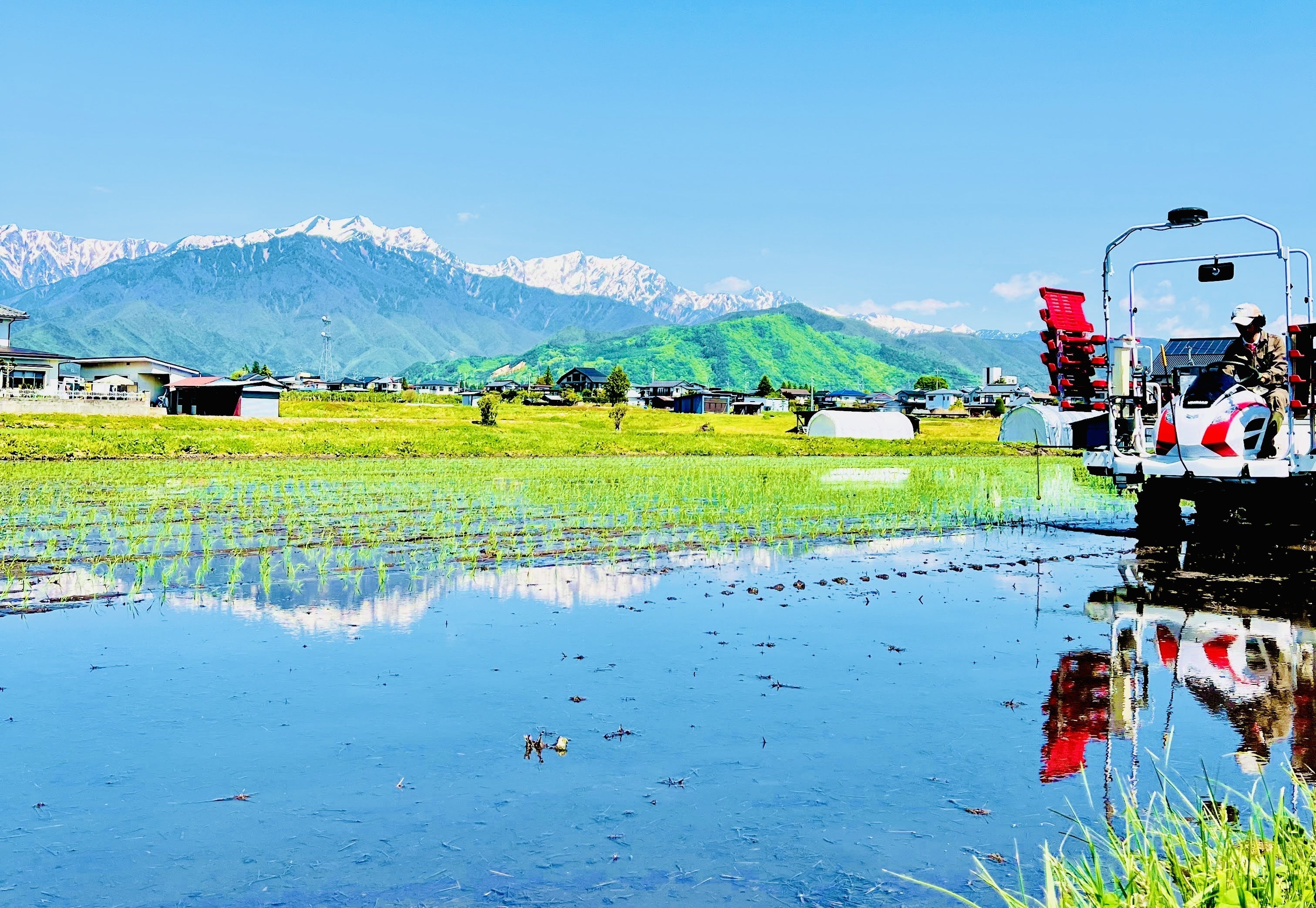 春が来たと感じてから田植えまで、あっという間で自分でも驚いています。去年の収穫後、稲わらをまき、冬の間雪下で土づくりが行われ、ポカポカ陽気の春が訪れたと感じた瞬間、畑仕事が始まり、耕起や代掻きなど田植えの準備。農家の師走は12月ではなく5月なのでは?と感じるほどです。