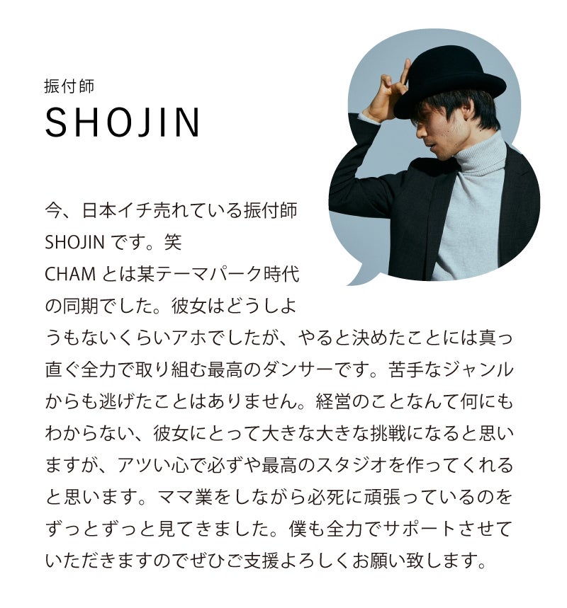 ダンスインストラクターの高橋友理(ダンサーネームCHAM/ちゃむ)と申します。