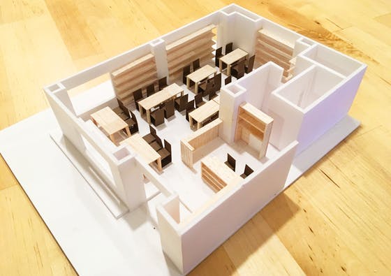 今回は、新店舗の模型が完成しましたのでそのご報告です。まだ細かいところは変更される可能性もありますが、おおまかには上の画像のようなイメージです