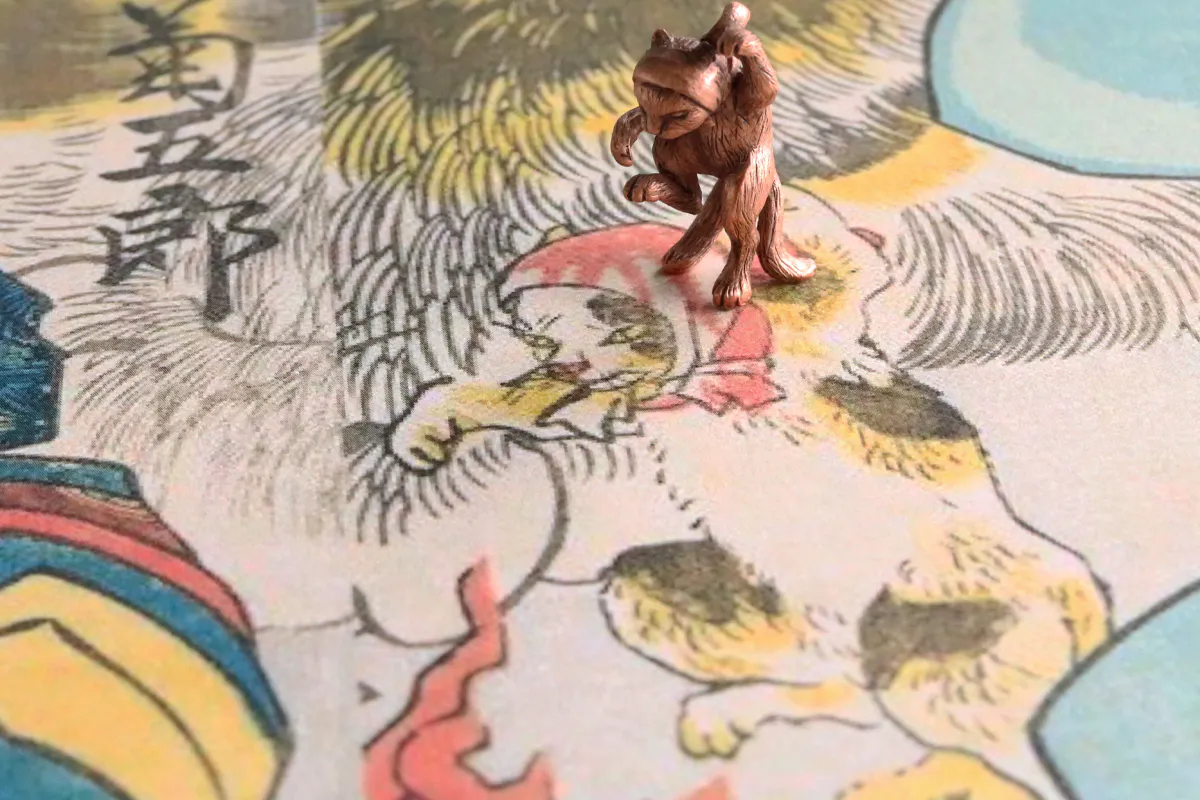 頬かむりをして踊る猫又(小)