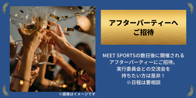MEET SPORTSイベントの数日後に開催されるアフターパーティーにご招待いたします。