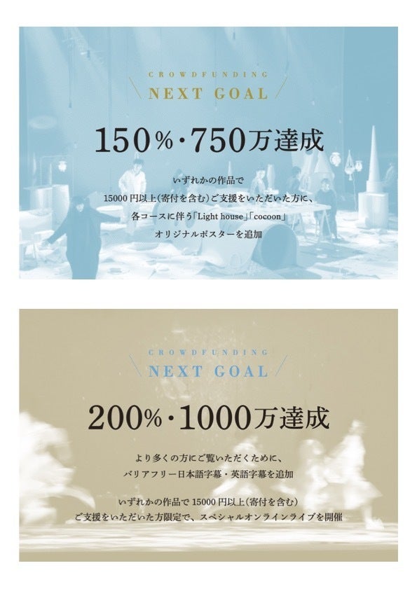 *いずれかの作品で15000円以上(寄付を含む)ご支援をいただいた方に、各コースに伴う「Light house」「cocoon」オリジナルポスターを追加