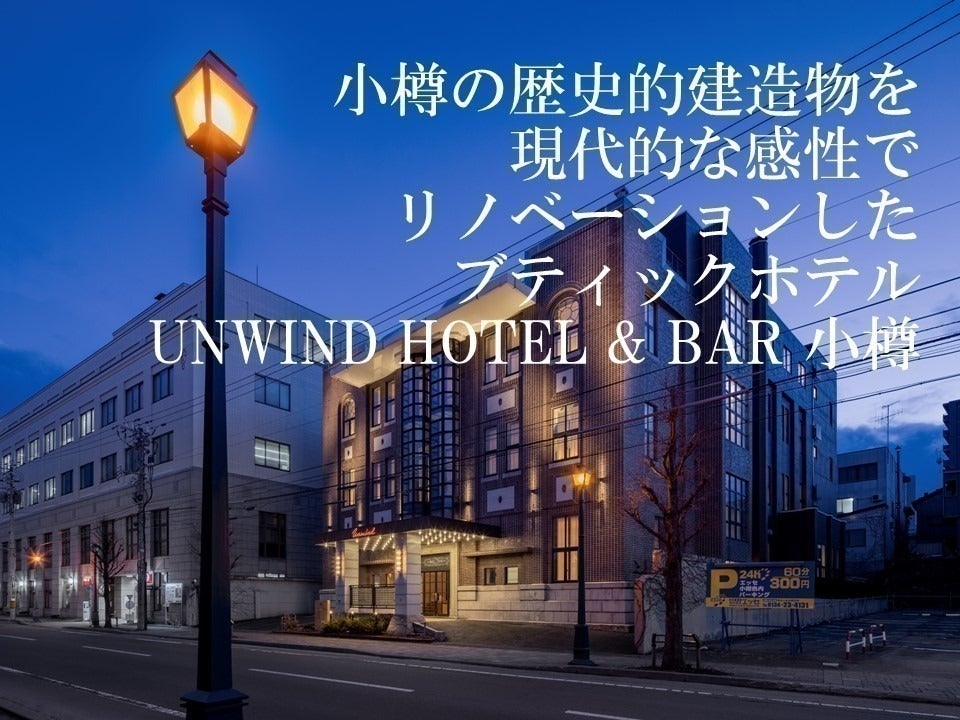 UNWIND HOTEL&BAR 小樽、マネージャーの大場と申します。当ホテルは小樽市から歴史的建造物の指定を受ける、昭和6年(1931年)に外国人専用ホテルとして建築された「越中屋ホテル」を、現代的な感性で大胆にリノベーションを施したブティックホテルです。クラシック&コンテンポラリーをテーマとしたその内外装は、小樽らしい歴史的な情緒と、現代的なスタイルが融合した幻想的とも言える空間を創り出しており、小樽の新しいスポットとして注目を集め、昨年末には小樽市より改めて都市景観賞も授与しています。
