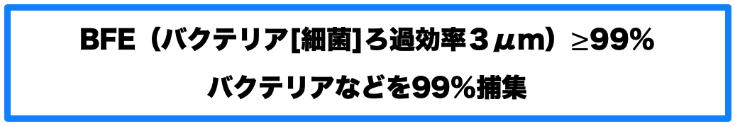 BFE(細菌濾過効率) ≥ 95.84%