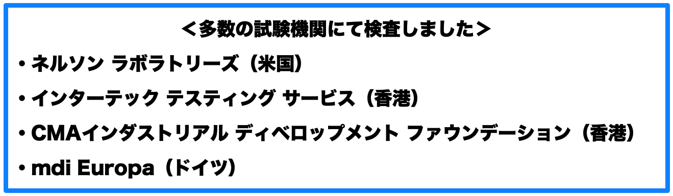検査実施機関:インターテック テスティング サービス(2020年香港 https://www.intertek.com.hk/