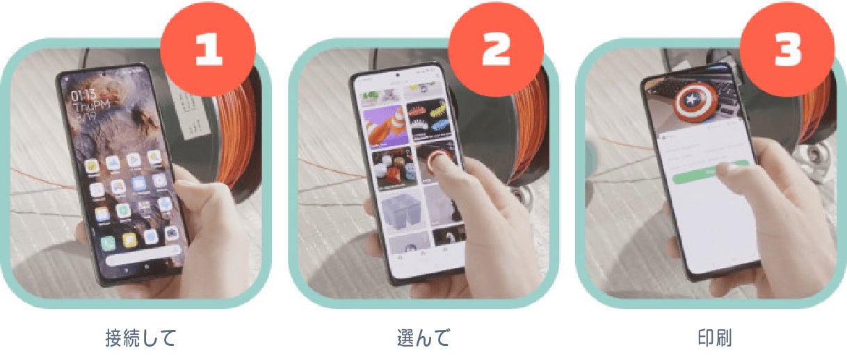 Cubeをスマホまたはコンピューターに接続したら、アプリからお気に入りのモデルを選択して、「印刷」ボタンを押して印刷を開始。GoofooCubeで誰もが魔法のような3Dプリントを体験できます。
