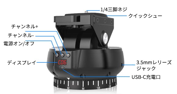 上下左右ボタンを押すと、雲台がサクサク動いてくれます。カメラなどのデバイスの装着方法も簡単なので、機械が苦手な方も安心!