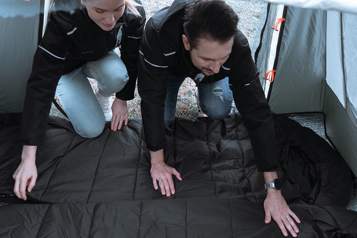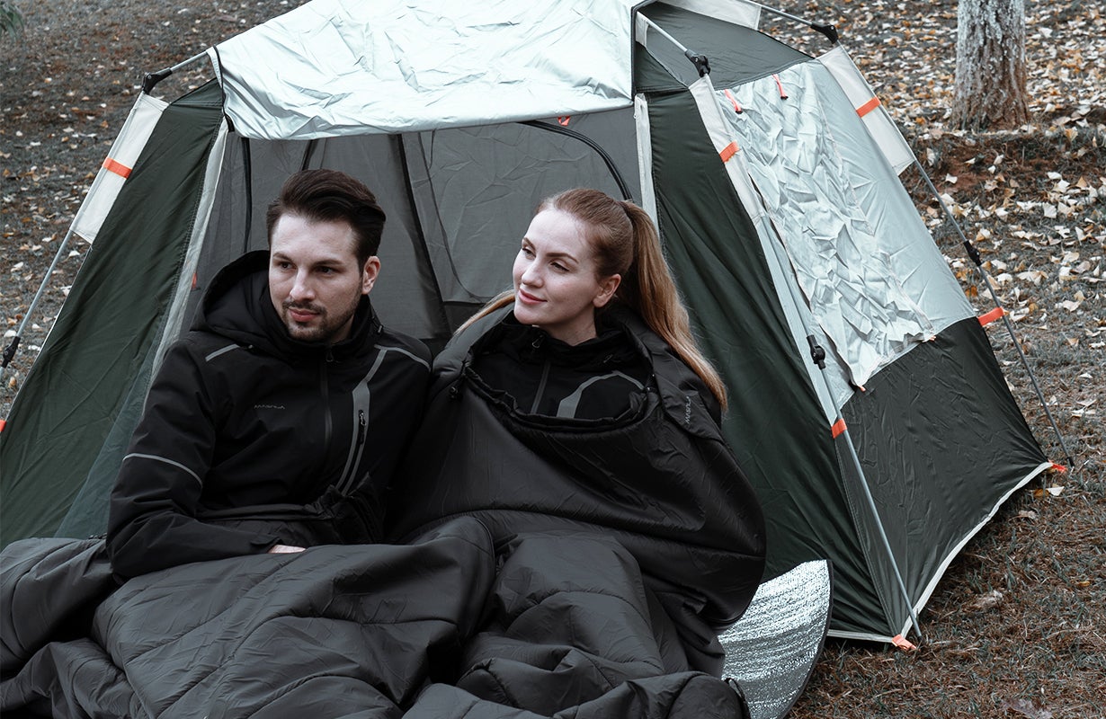 寝袋内に、シート状のエアロゲル素材を表地・裏地間に均一に備えることで高い断熱性を発揮し、アウトドアをより一層快適にお楽しみいただけます。