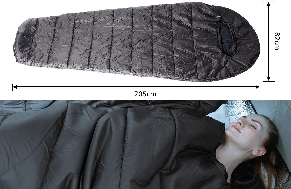 マミー型(人形型)。圧迫感がない上に寝袋内で自由に寝返りを打つことができるので、夜から次の朝まで快眠できます。また、起きたくないように感じさせ、快適に眠ることができます。高いフィット性があり、保温性・気密性に優れているので、暖気を外に逃しにくくなっています。外の気温に影響されにくく暖かくして眠る事ができ、冬にアウトドアをする時に頼りになります。