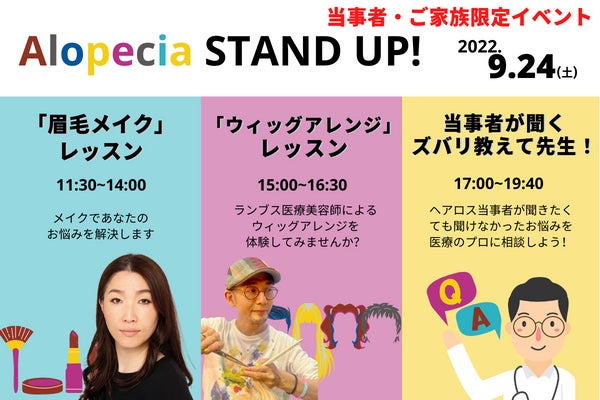 ズラリと並ぶウィッグを実際に試着できる、中々無い機会です!小学校6年生2人の可愛い、ヘアロスキッズアンバサダーによるトークショーや、全く新しい概念のヘアショー、そして痛みと疲労の専門医、みおしん先生をお招きしてのマイカルテ講座もございます。