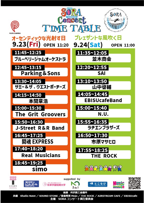 さて、SORAコンサート2022にご出演頂くアーティストの皆様が決定し、タイムテーブルも先日公開されました!改めてこの場で発表させて頂きます。