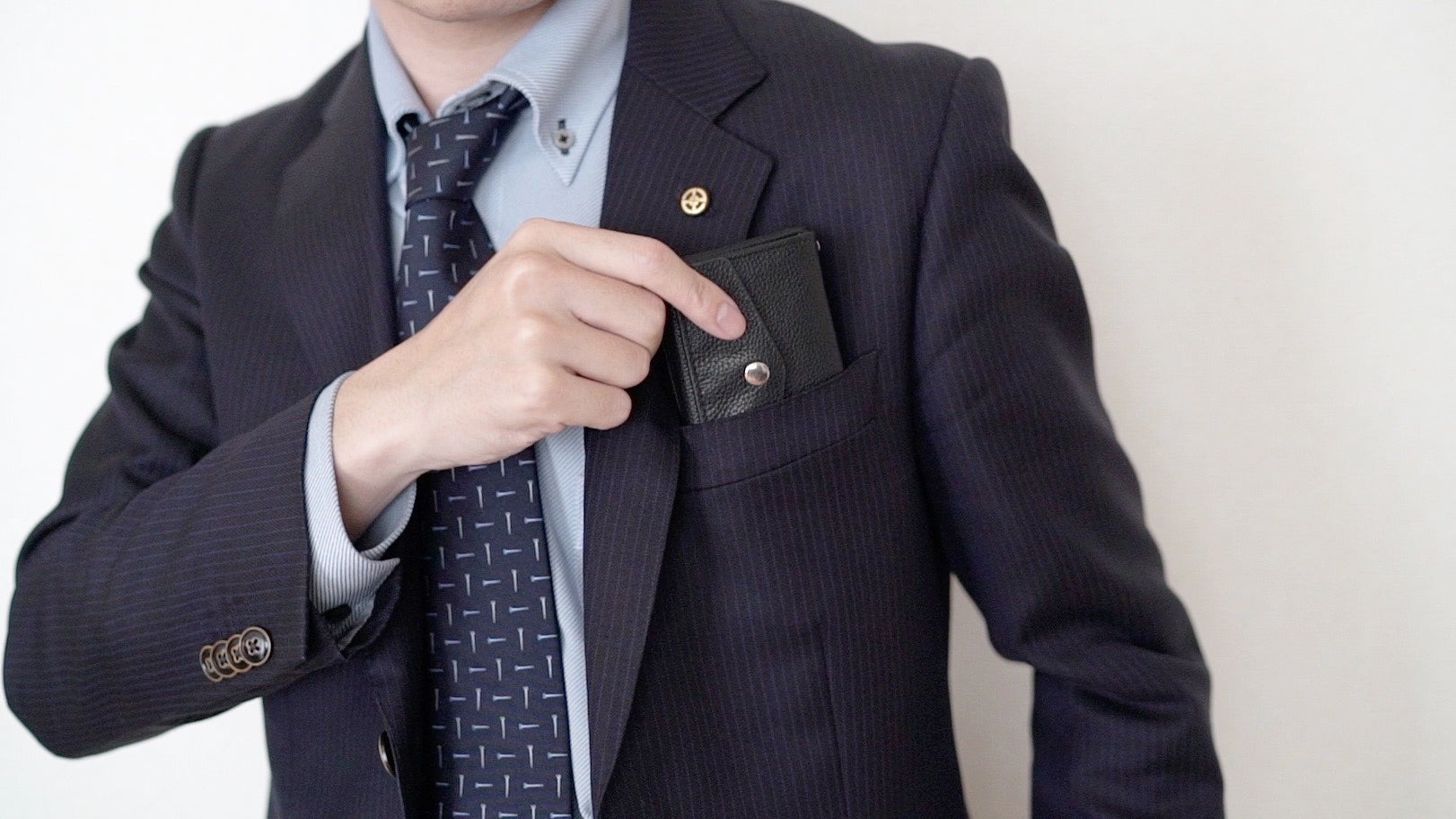 財布の厚みが薄くなり、背広の胸ポケットにも楽々と入ります