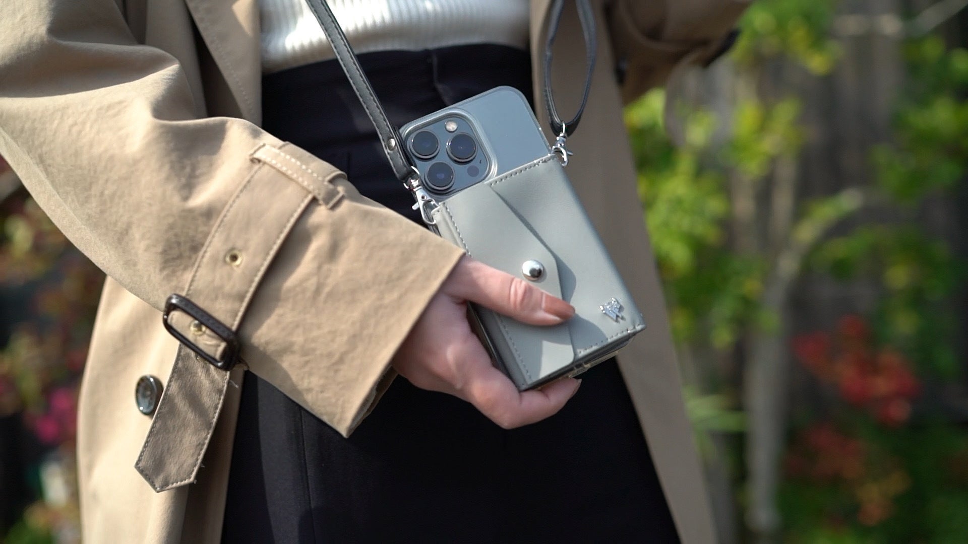 付属のショルダーストラップを使えば、ショルダースマホ財布としても使える