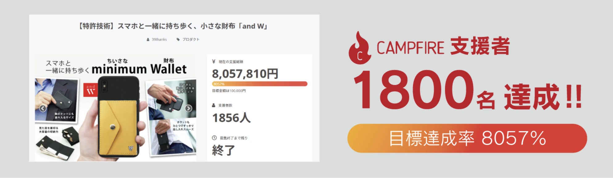 前回のクラウドファンディングにて、支援者数1800人以上・800万円を超える資金を獲得したミニマム財布「and W」が、満を持してリニューアルして帰ってきました!