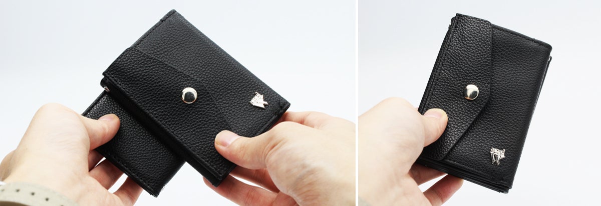 2つをドッキングしたフルサイズ財布(最大容量:カード13枚・お札8枚・小銭15枚・鍵1つ)