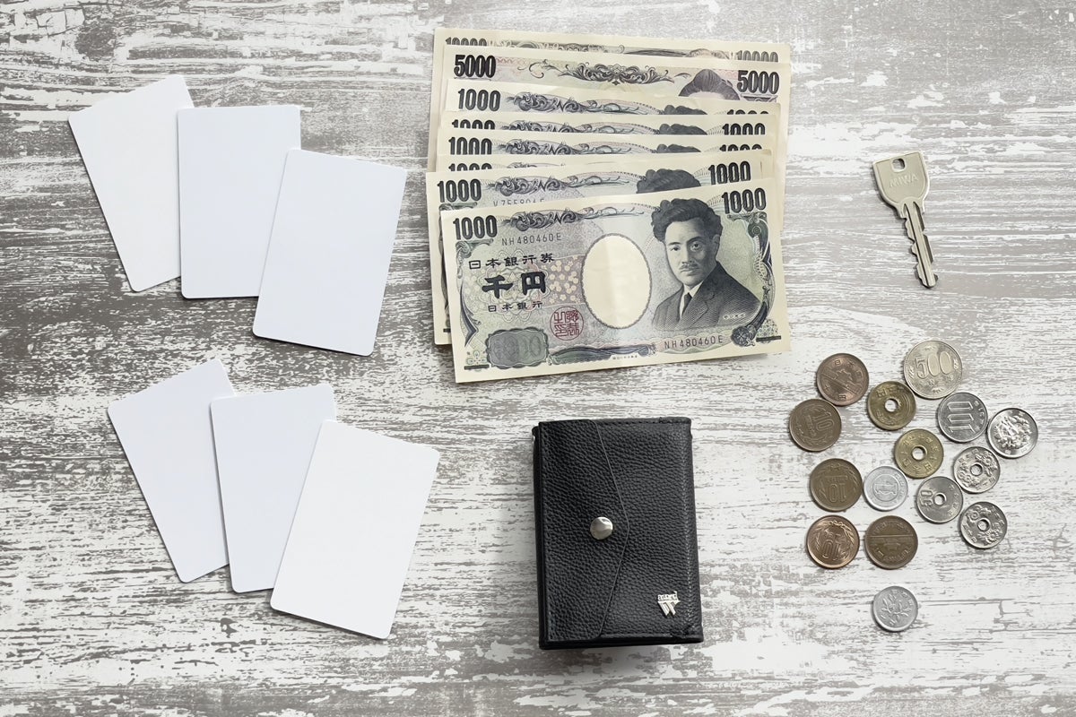 財布(最大容量:カード6枚・お札8枚・小銭15枚・鍵1つ)