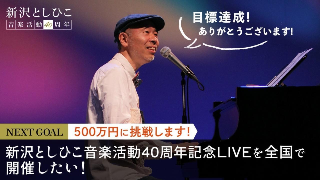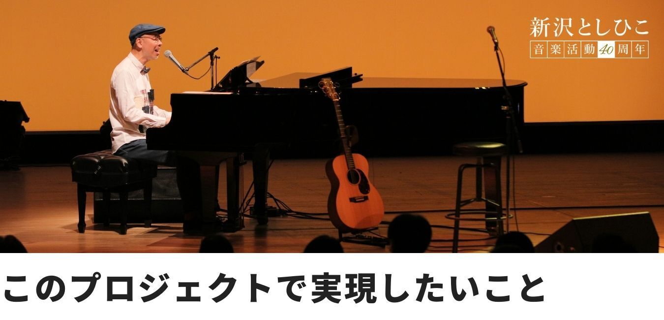 このクラウドファンディングは、新沢としひこ音楽活動40周年を記念したCDの制作と、そのCDを発表するコンサートをする、ということを目的としてスタートしました。そして、ありがたいことに目標額を達成することができました。ご支援、ご声援、あたたかいメッセージ、本当にありがとうございました。CDの制作もコンサートの開催も実現可能となり、とてもうれしく思っています。