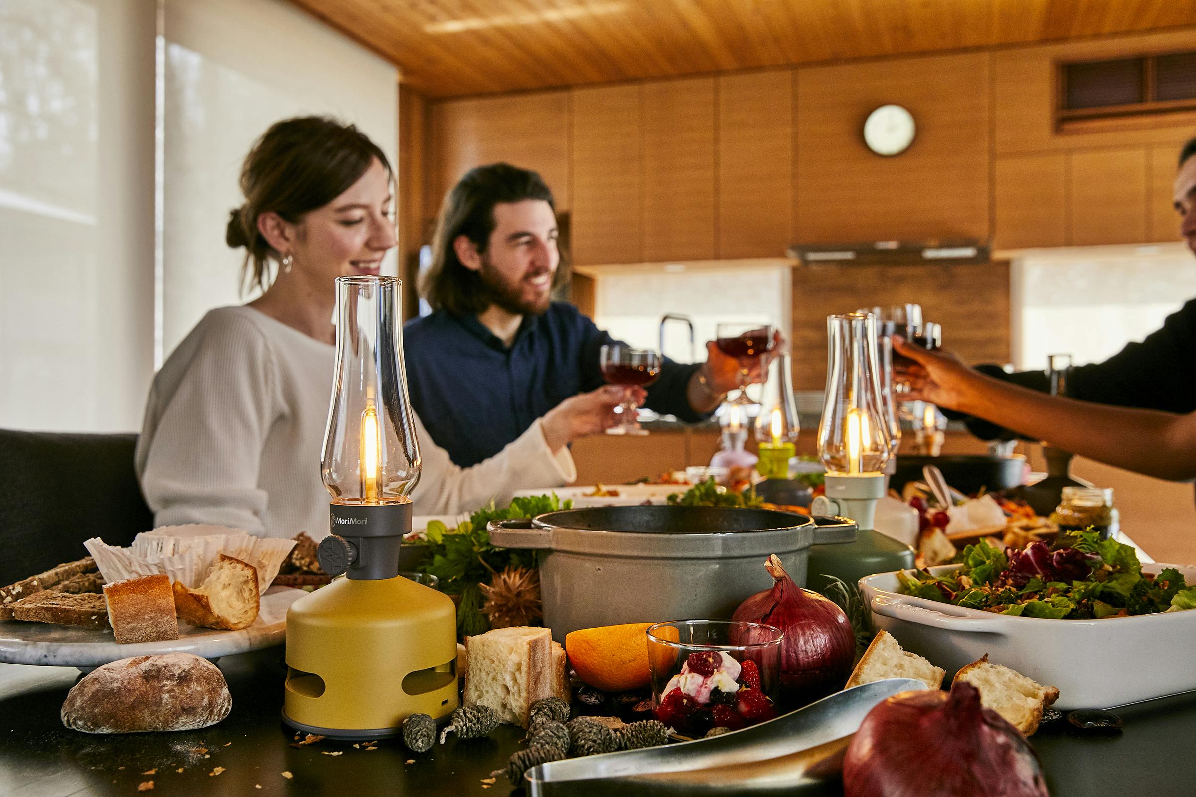 佇まいはガスランタンそのものなのに、火を使わず手軽なLEDで実現しているから、小さなお子さんやペットのいる家庭でも安心して使えます。