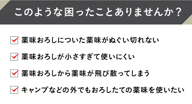 おろし金で薬味をおろした後、薬味を取るのが難しい構造が多いのが現状。