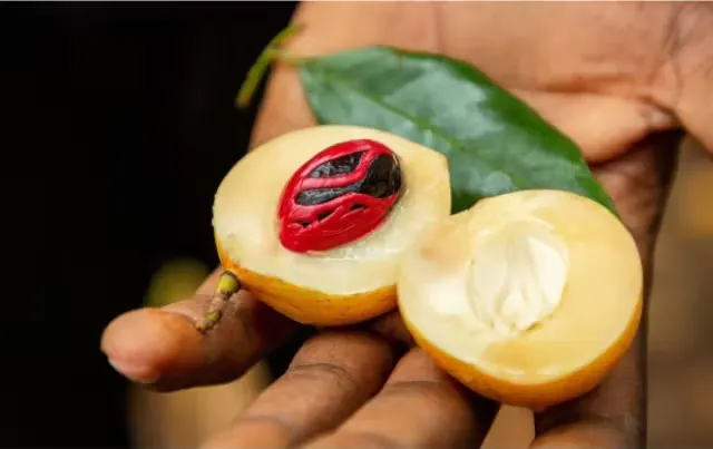ニクズク科ニクズク属のニクズクになる実の種子が、ナツメグになります。杏子やスモモに似た黄色い果実が実り、熟すと実が裂け赤い格子状の仮種皮が見えるように。この赤い仮種皮は別のスパイスで「メース」と呼ばれます。
