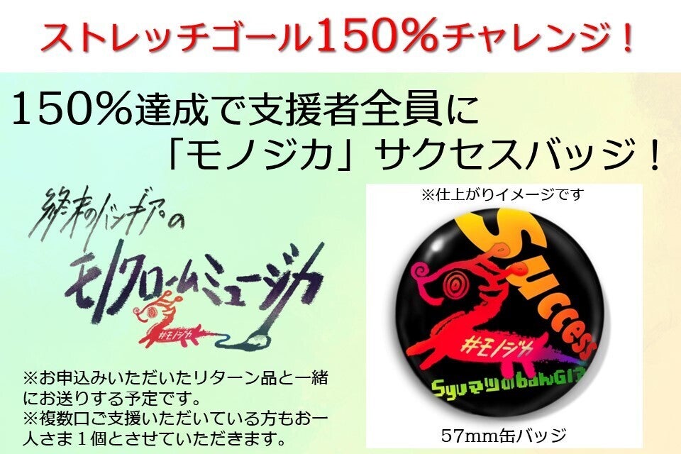ささやかではございますが、ご支援いただいた方全員に、ストレッチゴール150%達成ありがとうバッジをリターン品とともにお届けいたします。