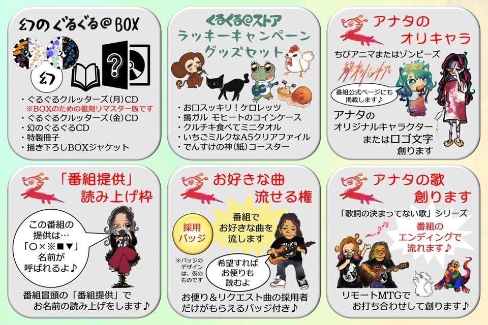 1カ月の番組運営費として4万円をスポンサー料金として設定させていただきます。(※番組運営費の不足分はファンクラブ「ぐるぐる◎クルッターズ」で頂いている収益から補填させていただきます)