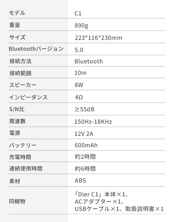 大音量かつ驚きの重低音を発する「Dier C1」は、アウトドアやパーティー等でも、活躍してくれます。